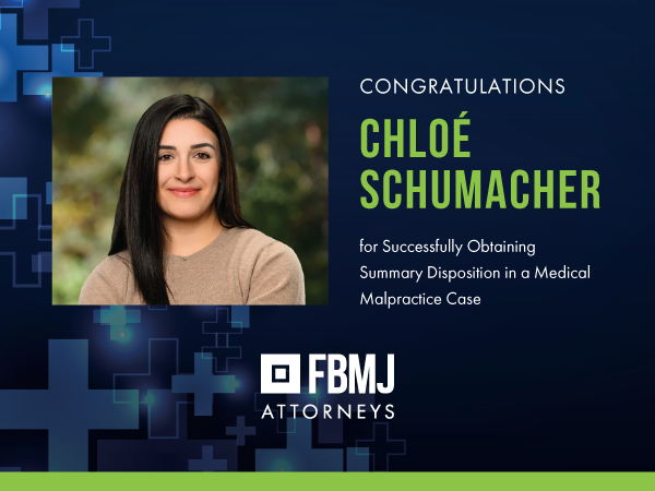 Congratulations to Chloé Schumacher on obtaining dismissal of a medical malpractice case on behalf of our clients. The case involved claims against a neurosurgeon and anesthesia providers arising from the management of a patient’s preoperative laboratory testing.