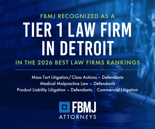 Foley, Baron, Metzger & Juip (FBMJ) is proud to be recognized in the 2026 Best Law Firms rankings as a Tier 1 Law Firm in Detroit.