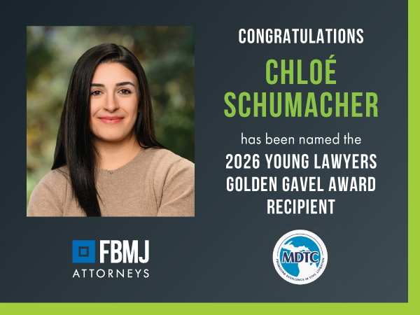 Foley, Baron, Metzger & Juip, PLLC is pleased to announce that associate attorney Chloé Schumacher has been selected as the 2026 Young Lawyers Golden Gavel Award recipient by the Michigan Defense Trial Counsel (MDTC).